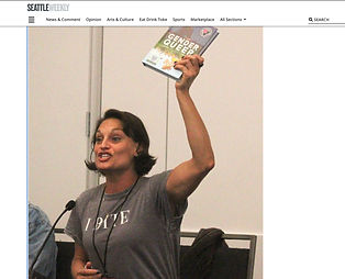 Writer Olivia Cuartero-Briggs holds up “Gender Queer: A Memoir” by Maia Kobabe, the most banned book in the United States, during an ECCC 2024 panel about banned books.